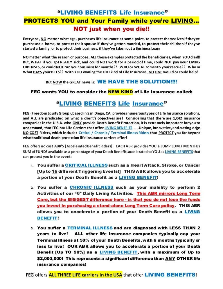 Tom buckingham our chief operating officer explains why a consumer may want the protection that term life insurance with living benefits provides. Living benefits also referred to as accelerated death benefits can be added as a rider to life insurance policies either at the time of purchase or afterwards.